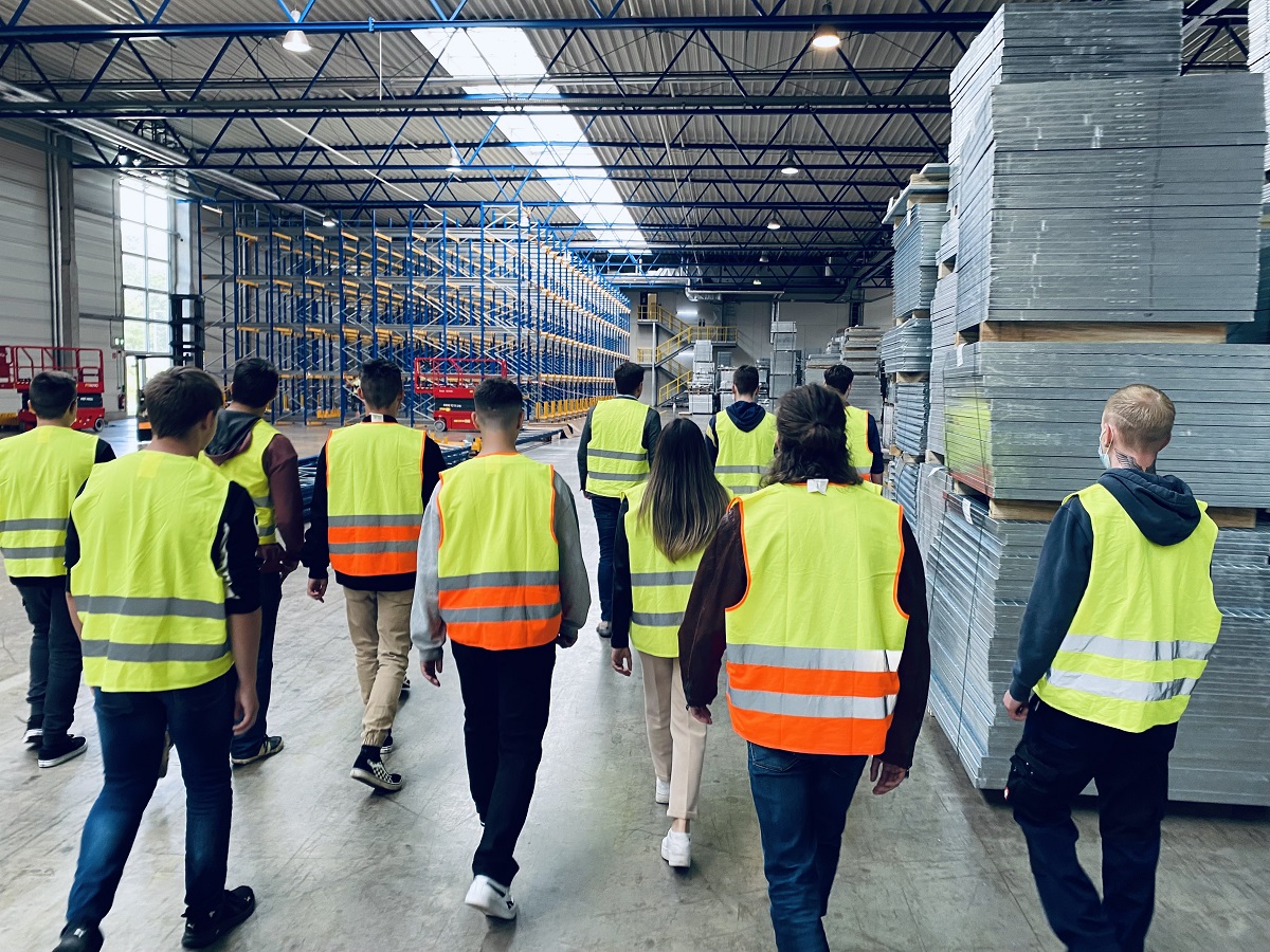 Gleich nach einer kurzen Einführung und der Begrüßung durch Geschäftsführer Wolfgang Schell und Ausbildungsleiterin Claudia Wagner geht es los: vorbereitet wurde der Parcours quer über das Firmengelände von den älteren Azubis. In drei Gruppen wird das Werksgelände erkundet. Insgesamt elf Stationen schicken die Kleingruppen durch fast alle Abteilung. Von der Produktion zum Betriebsrestaurant, von der Verwaltung in die Stahlbearbeitung. An jedem Zwischenstopp gibt es einen neuen Briefumschlag mit dem nächsten Ziel. So lernen sich die Gruppen kennen und finden sich nach und nach zurecht. Nach der Auswertung der Ergebnisse und einem gemeinsamen Mittagessen sollen die ersten Eindrücke gefestigt werden. Bei einer erneuten Runde durch die Werkshallen, diesmal in Begleitung von den Azubi-Mentoren, wird alles erklärt. Wie werden die Coils angeliefert? Wie entsteht ein Gitterrost? Wo werden die fertigen Produkte verladen? Der komplette Verarbeitungsprozess vom Rohmaterial bis zum fertigen Produkt wird gemeinsam durchlaufen.